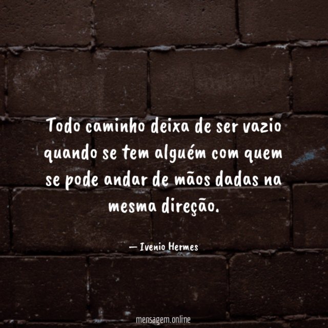 Todo caminho deixa de ser vazio quando se tem alguém com quem se pode andar de mãos dadas na mesma direção.