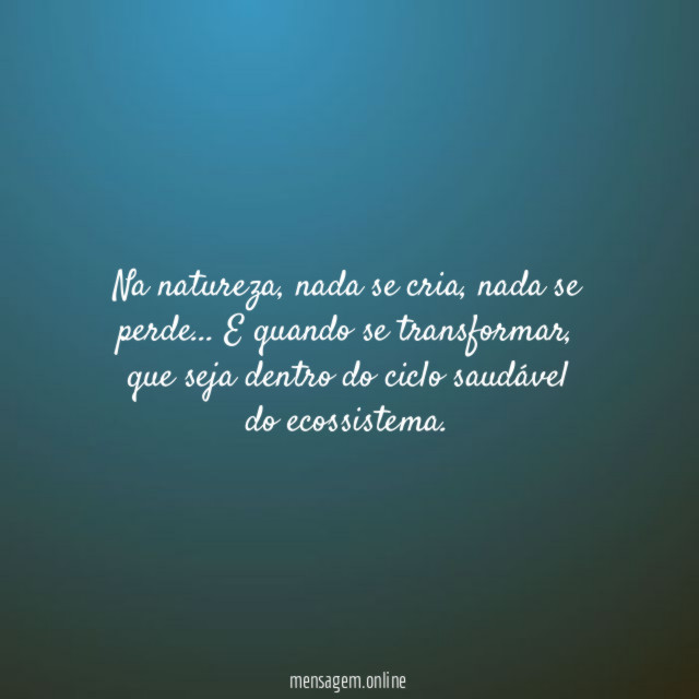 Na natureza, nada se cria, nada se perde… E quando se transformar, que seja dentro do ciclo saudável do ecossistema.