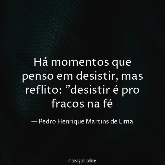 Toda vez que penso em desistir, uma força maior renasce dentro de mim, que me faz seguir a caminhada da vida mesmo com todas as dificuldades!