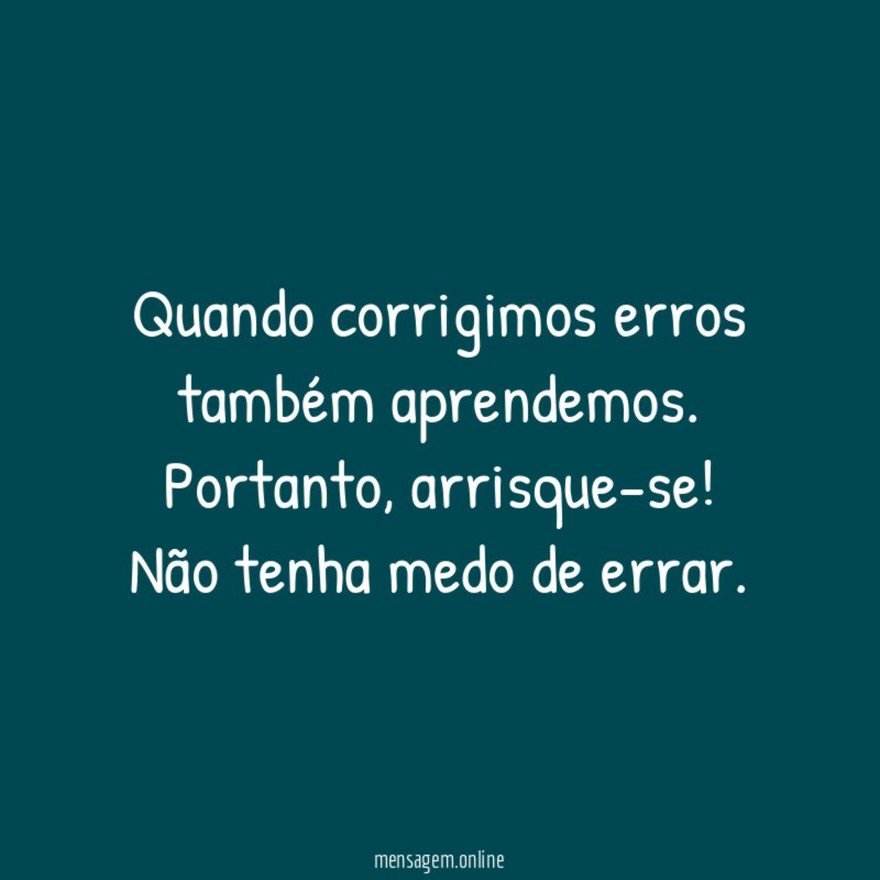 Portanto, arrisque-se! Não tenha medo de errar.