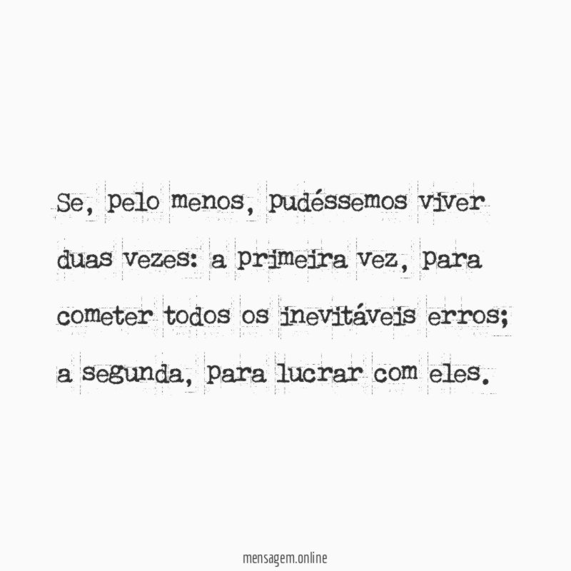 Se, pelo menos, pudéssemos viver duas vezes: a primeira vez, para cometer todos os inevitáveis erros; a segunda, para lucrar com eles.