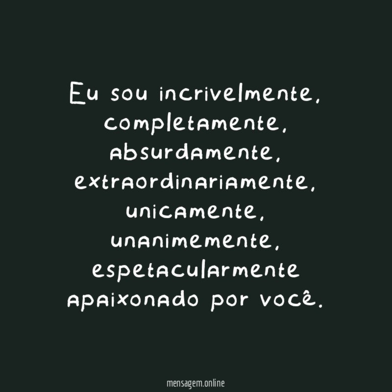 Eu sou incrivelmente, completamente, absurdamente, extraordinariamente, unicamente, unanimemente, espetacularmente apaixonado por você.