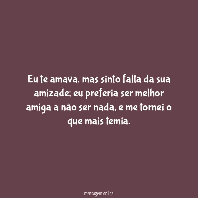 Eu sempre pensei - e continuo - que a verdadeira amizade é aquela que nos permite fa…