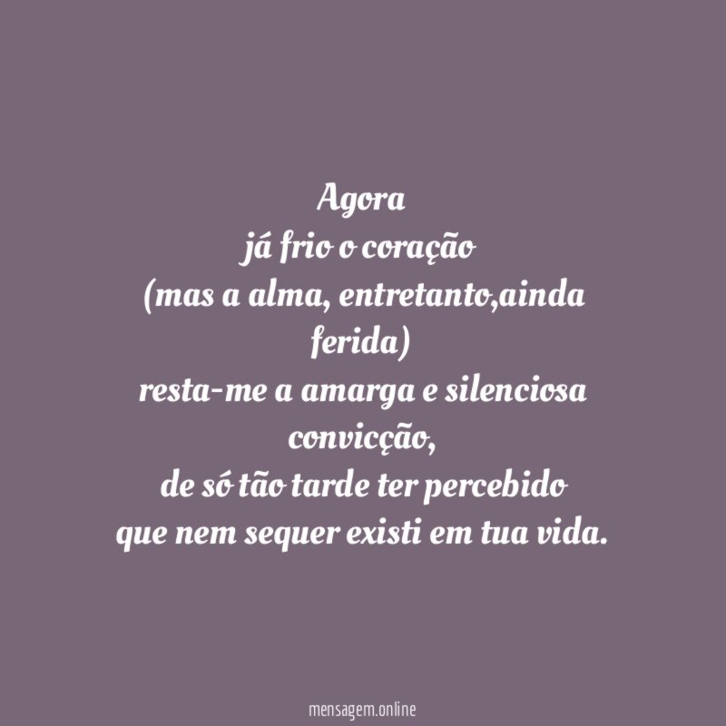Cansei de ser razão. Eu quero ser emoção e sentimento, porque o bom da vida é o frio na barriga e o coração acelerado.