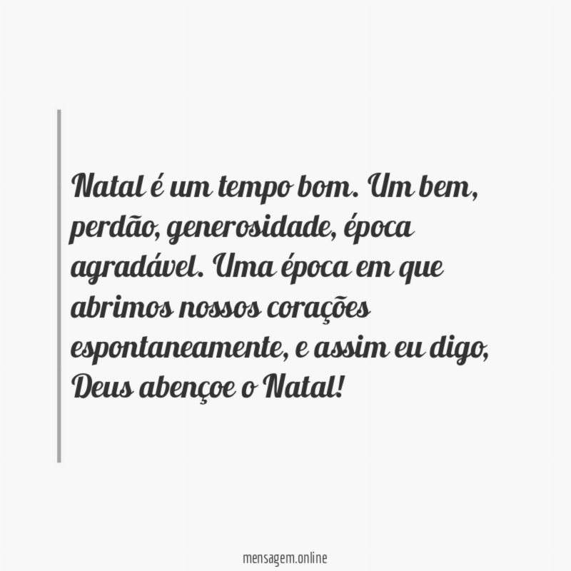 Espero que o espírito natalino faça morada em seu coração e permaneça durante o ano todo. Um feliz e abençoado Natal!