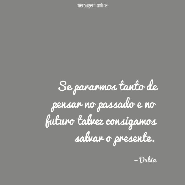 Se pararmos tanto de pensar no passado e no futuro talvez consigamos salvar o presente.