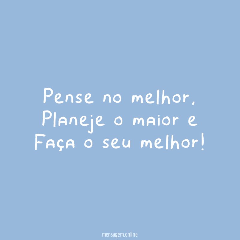 Faça o melhor que puder. Seja o melhor que puder. O resultado virá na mesma proporção de seu esforço.