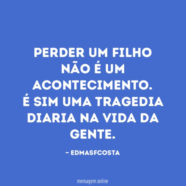 A dor de perder um filho é tão anormal, que quem não passou por isso não consegue sequer imaginar .