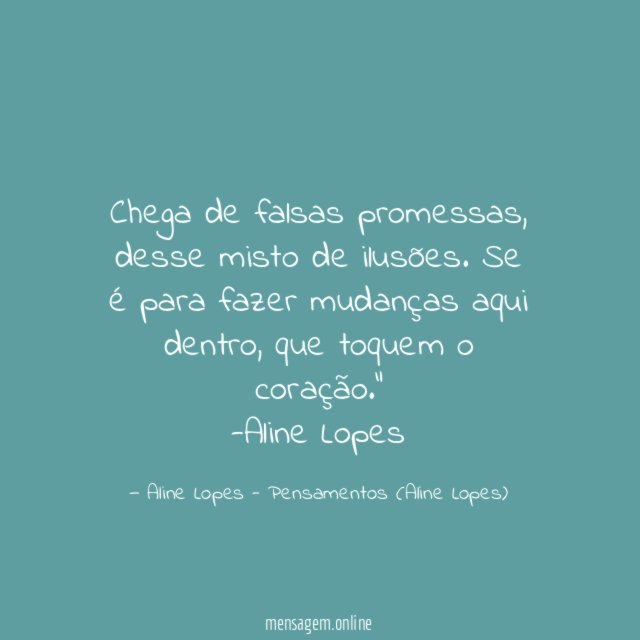 "Chega de falsas promessas, desse misto de ilusões. Se é para fazer mudanças aqui dentro, que toquem o coração."
