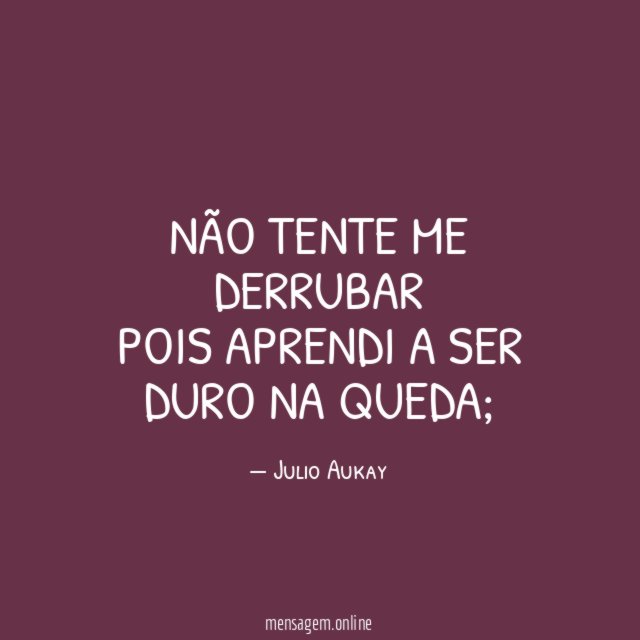 Tente me derrubar, tente me humilhar, tente me por pra baixo, mais uma coisa é certa, você pode conseguir uma ou duas vezes, pois na terceira, eu vou te mostrar que as tuas palavras não me afetam mais.