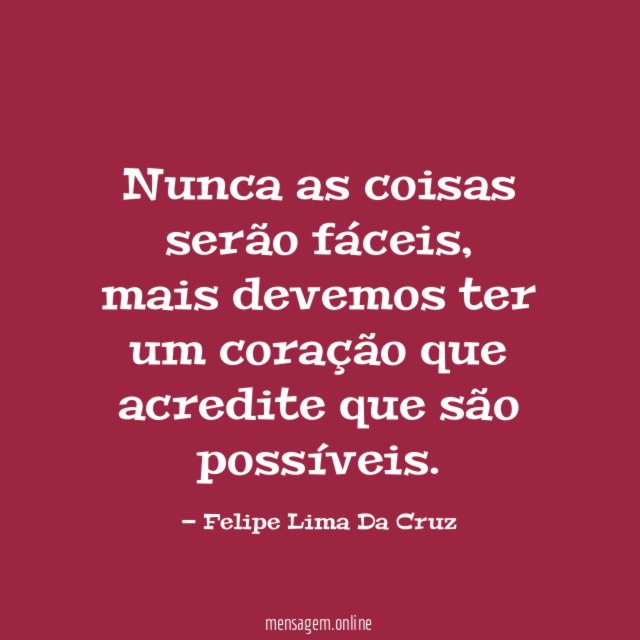 …Só sabemos vencer na vida se arriscarmos coisas que ao nosso ver são impossíveis, mas pelo contrario se continuarmos com fé elas se tornam possíveis ao nosso alcance