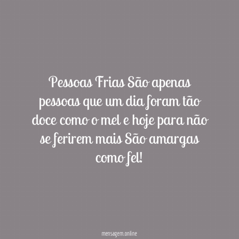 Pessoas frias por natureza sempre vão achar que o calor dos sentimentos é artificial.