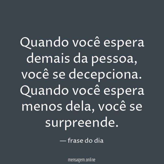Quando você espera demais da pessoa, você se decepciona. Quando você espera menos dela, você se surpreende.