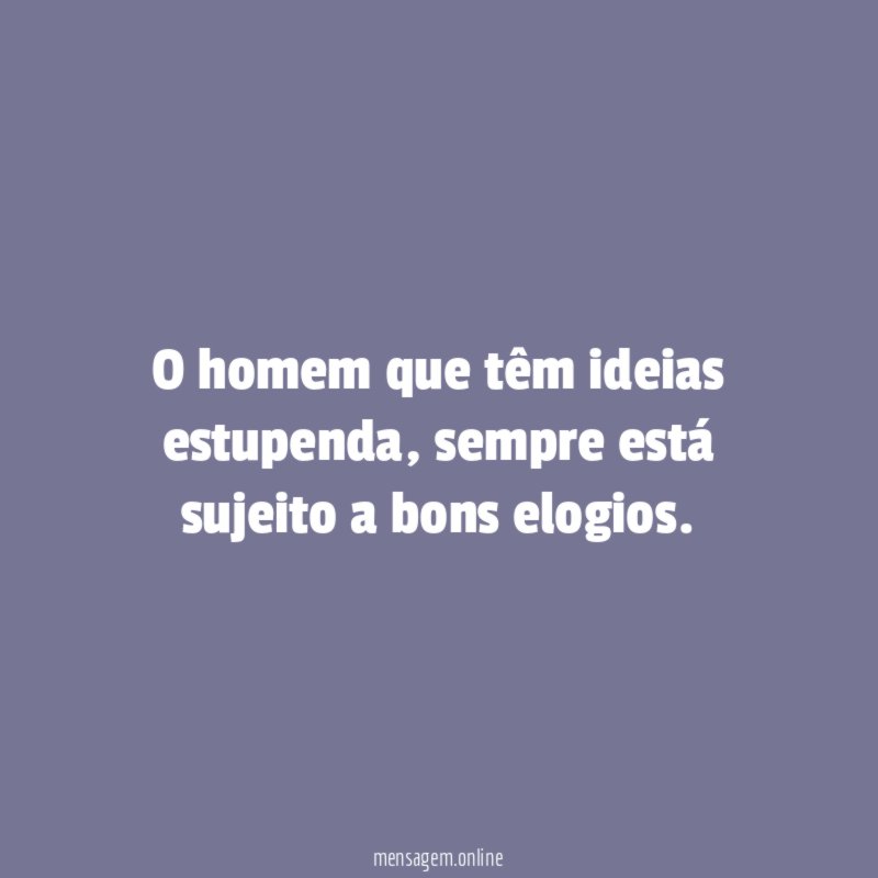 O homem que têm ideias estupenda, sempre está sujeito a bons elogios.