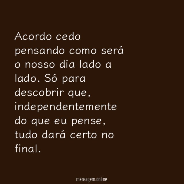 Para nós dois, tudo acontece na hora certa e da forma certa. Se isso não é sinal de que fomos feitos um para o outro, não sei mais o que é.
