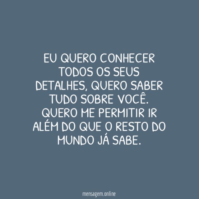 Eu quero saber mais e mais de você, não quero que ninguém te leve para longe de mim. Afinal, fomos feitos para viver lado a lado!