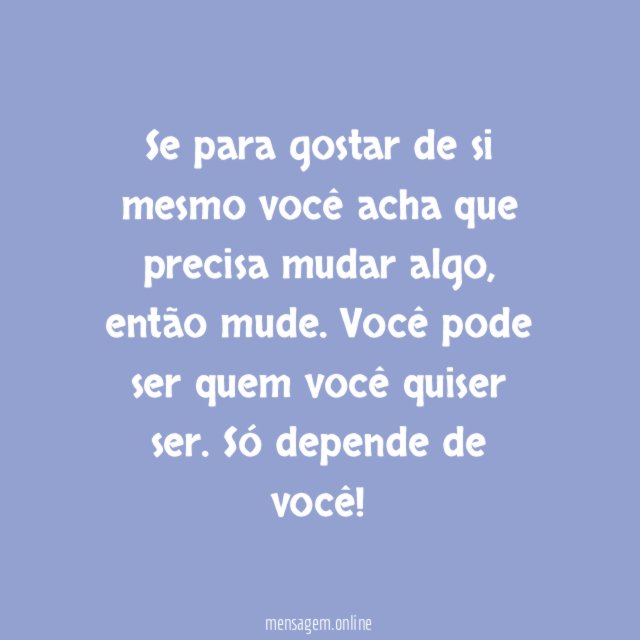 Se para gostar de si mesmo você acha que precisa mudar algo, então mude. Você pode ser quem você quiser ser. Só depende de você!