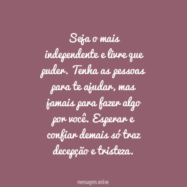 Cultive bons pensamentos, bons sentimentos e até mesmo admiração perante todas as pessoas, mas tente jamais criar expectativas. Elas provavelmente se quebrarão e se transformarão em uma decepção dolor…
