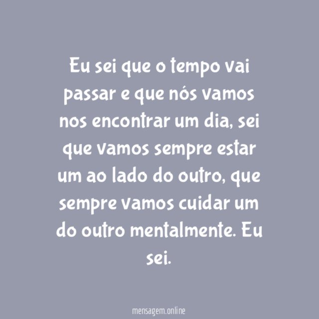 Eu sei que o tempo vai passar e que nós vamos nos encontrar um dia, sei que vamos sempre estar um ao lado do outro, que sempre vamos cuidar um do outro mentalmente. Eu sei.
