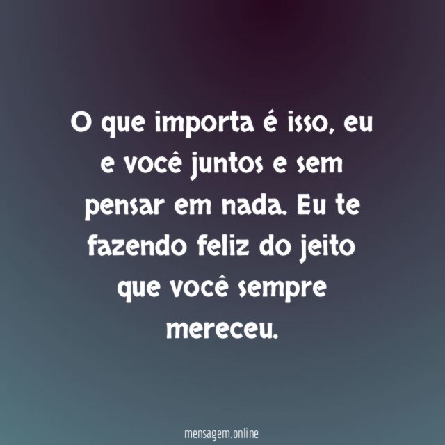 Estar contigo e te fazer feliz é o que me importa. E se eu conseguir isso daqui para frente, já estarei satisfeito e muito feliz.
