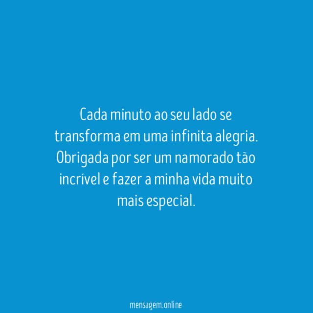 A melhor parte do nosso namoro é essa sensação de parceria. Com você, eu sei que não tenho apenas um namorado, mas sim um companheiro para cada momento, desde os mais tristes até os mais alegres. Obri…