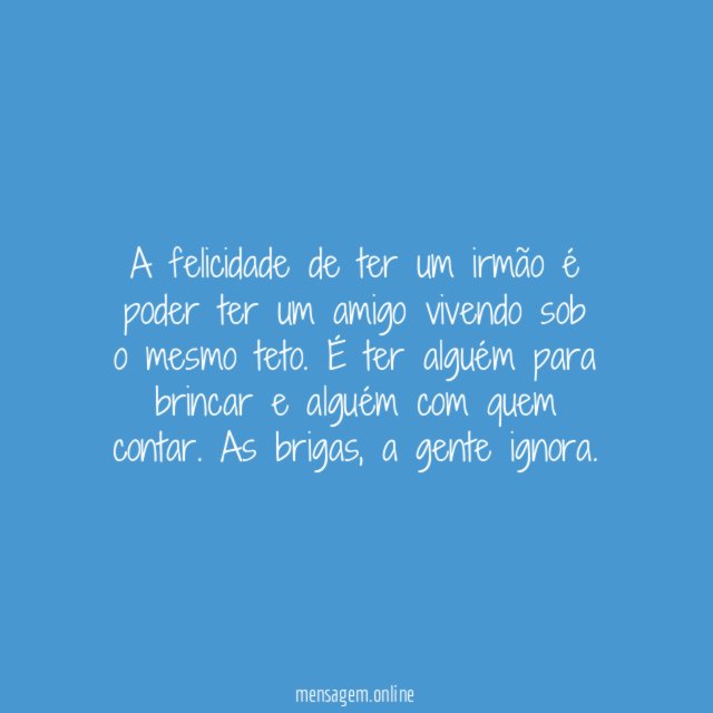 Um irmão é uma ligação divina para a vida inteira. É uma amizade que não se escolhe, mas que muito se agradece. É alguém que sabe exatamente como foi sua criação e já entende metade das suas escolhas.…