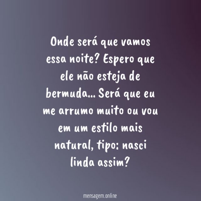 Onde será que vamos essa noite? Espero que ele não esteja de bermuda… Será que eu me arrumo muito ou vou em um estilo mais natural, tipo: nasci linda assim?