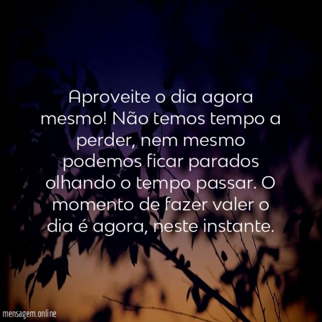 Aproveite o dia agora mesmo! Não temos tempo a perder, nem mesmo podemos ficar parados olhando o tempo passar. O momento de fazer valer o dia é agora, neste instante.
