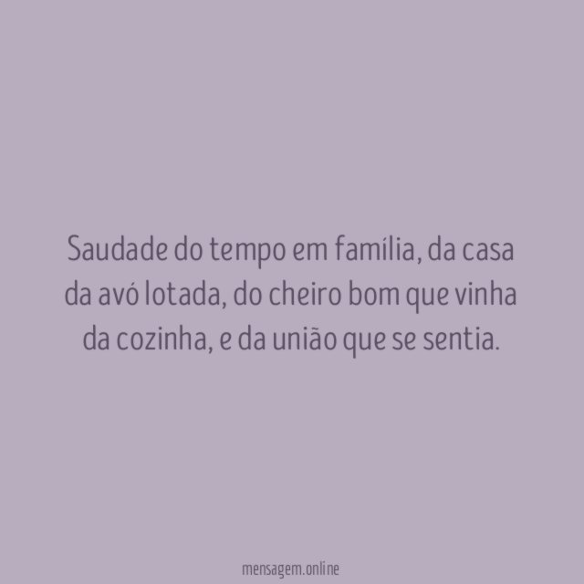 Saudade do tempo em família, da casa da avó lotada, do cheiro bom que vinha da cozinha, e da união que se sentia.