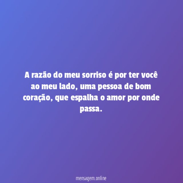 A razão de eu acordar todos os dias de manhã e querer ser melhor sempre é saber que tenho você ao meu lado, a razão do meu sorrir, a razão do meu viver.