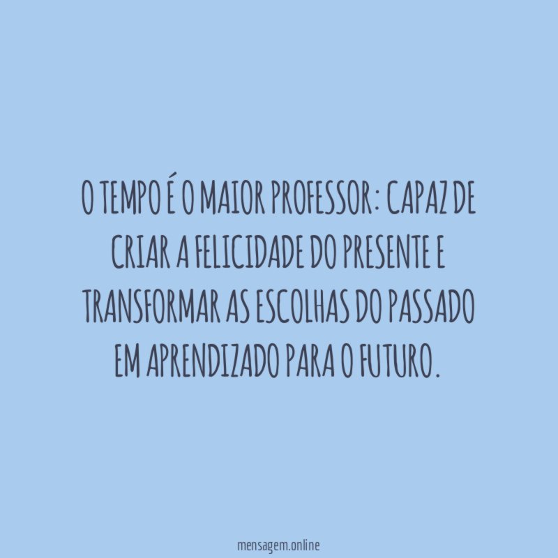 O tempo é o maior professor: capaz de criar a felicidade do presente e transformar as escolhas do passado em aprendizado para o futuro.