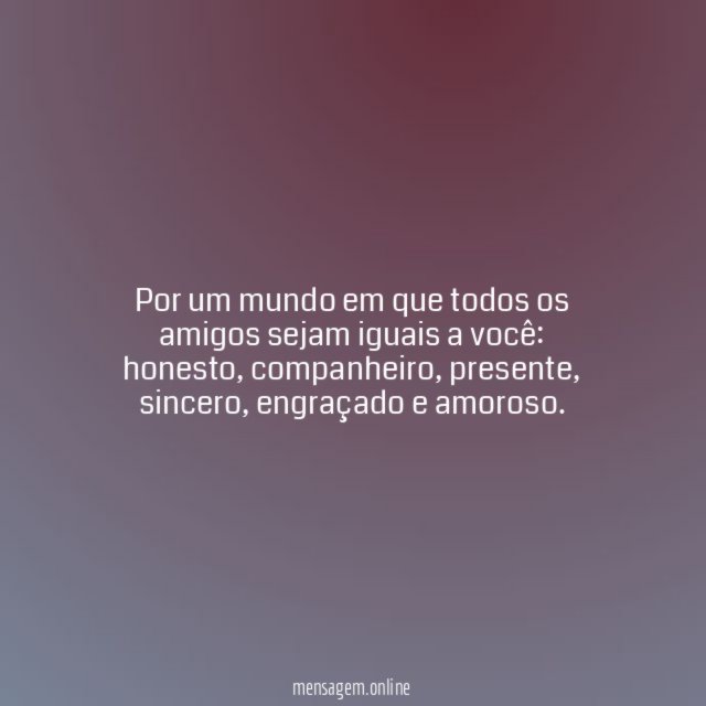 Por um mundo em que todos os amigos sejam iguais a você: honesto, companheiro, presente, sincero, engraçado e amoroso.