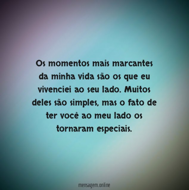 Os momentos mais marcantes da minha vida são os que eu vivenciei ao seu lado. Muitos deles são simples, mas o fato de ter você ao meu lado os tornaram especiais.