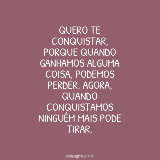 Quero te conquistar, porque quando ganhamos alguma coisa, podemos perder. Agora, quando conquistamos ninguém mais pode tirar.