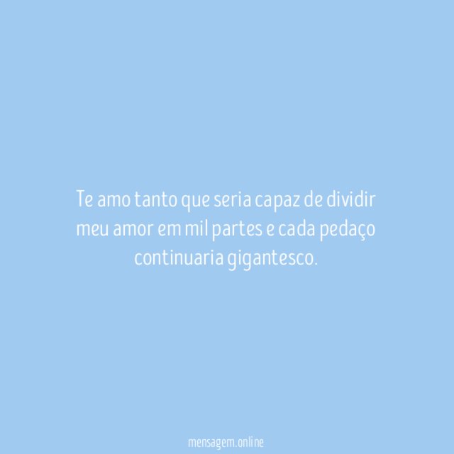 O amor que sinto por você é tão grande, mas tão grande, que é difícil mensurar um tamanho real, pois acho que ele não existe. Meu amor é infinito, nunca vai acabar ou sequer diminuir. Meu amor por voc…