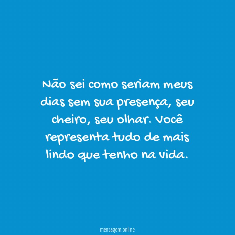 Não sei como seriam meus dias sem sua presença, seu cheiro, seu olhar. Você representa tudo de mais lindo que tenho na vida.