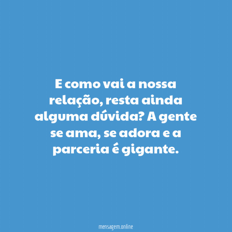 E como vai a nossa relação, resta ainda alguma dúvida? A gente se ama, se adora e a parceria é gigante.