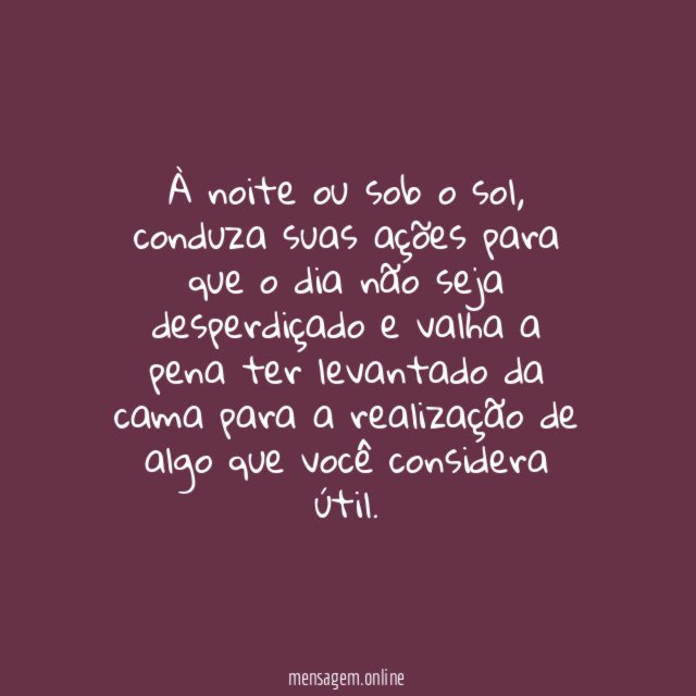 À noite ou sob o sol, conduza suas ações para que o dia não seja desperdiçado e valha a pena ter levantado da cama para a realização de algo que você considera útil.