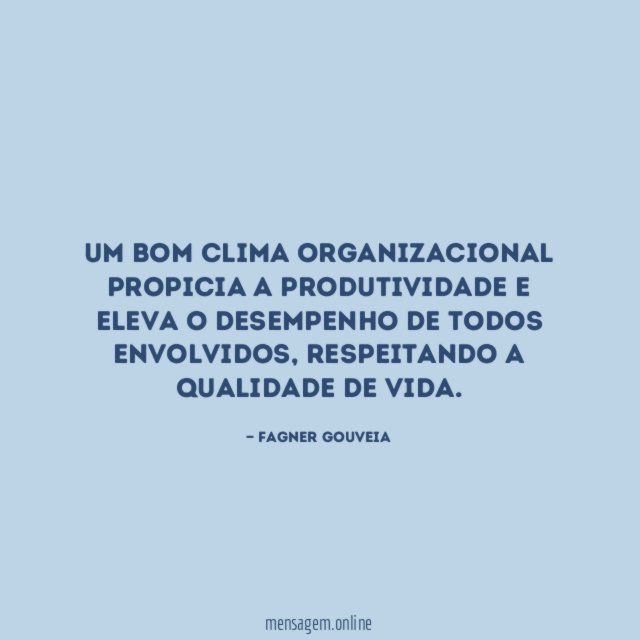 Um bom clima organizacional propicia a produtividade e eleva o desempenho de todos envolvidos, respeitando a qualidade de vida.