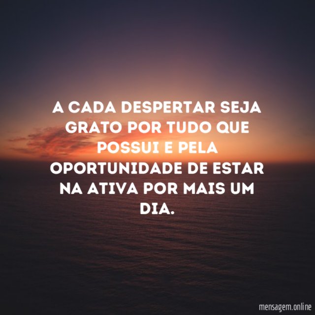 A cada despertar seja grato por tudo que possui e pela oportunidade de estar na ativa por mais um dia.