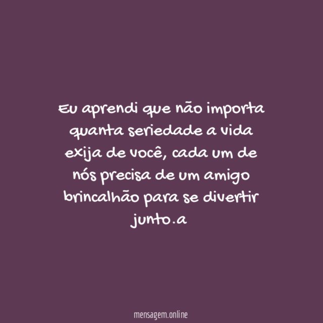 Eu aprendi que não importa quanta seriedade a vida exija de você, cada um de nós precisa de um amigo brincalhão para se divertir junto.a