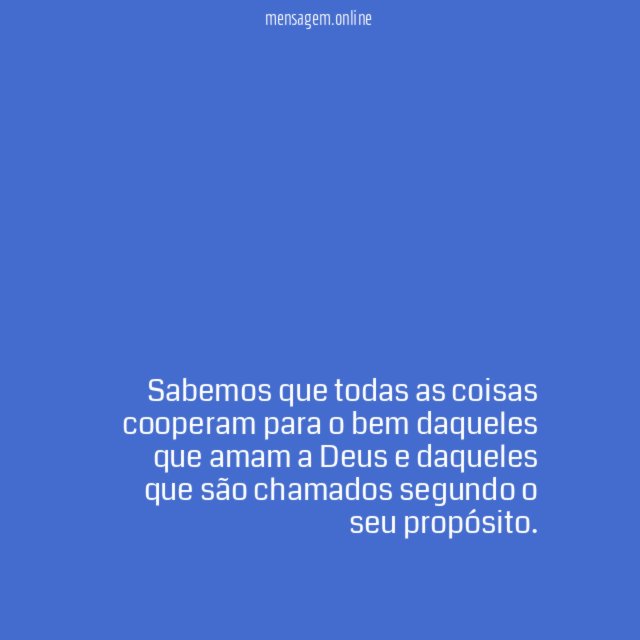 Sabemos que todas as coisas cooperam para o bem daqueles que amam a Deus e daqueles que são chamados segundo o seu propósito.
