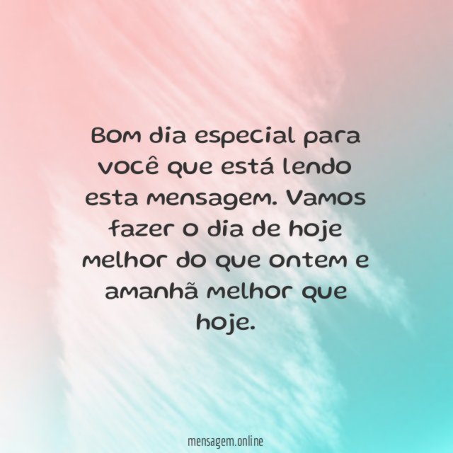 Sabe aquele dia especial, cheio de surpresas boas, recheado de alegrias e repleto de bênçãos? Então, é assim que eu desejo para você. Bom dia!
