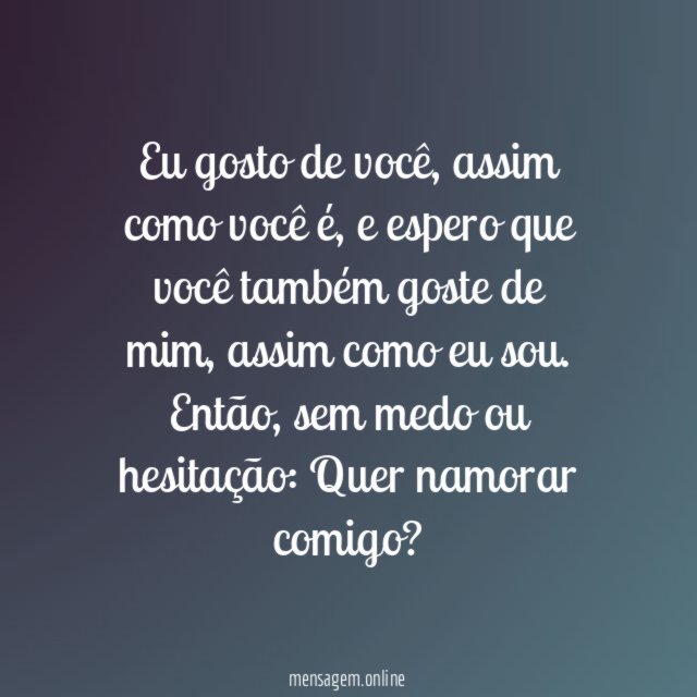 Sinto desejo de construir algo maior, algo mais forte ainda. Não receie em responder minha pergunta: aceita namorar comigo?