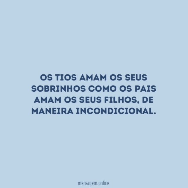 Os tios amam os seus sobrinhos como os pais amam os seus filhos, de maneira incondicional.