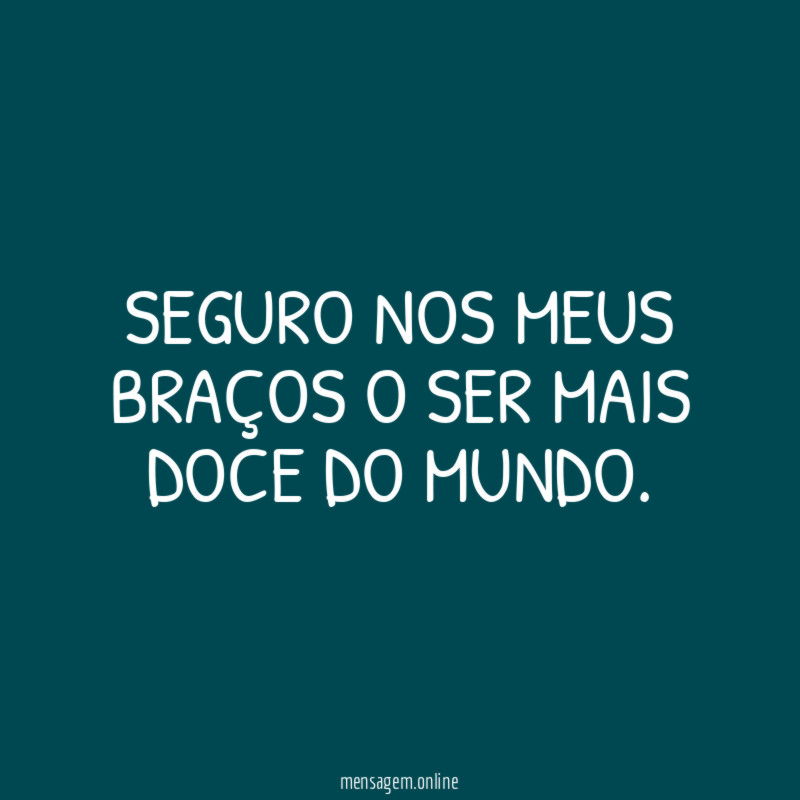Quando eu seguro você em meus braços, é como se eu tivesse o mundo nas mãos.