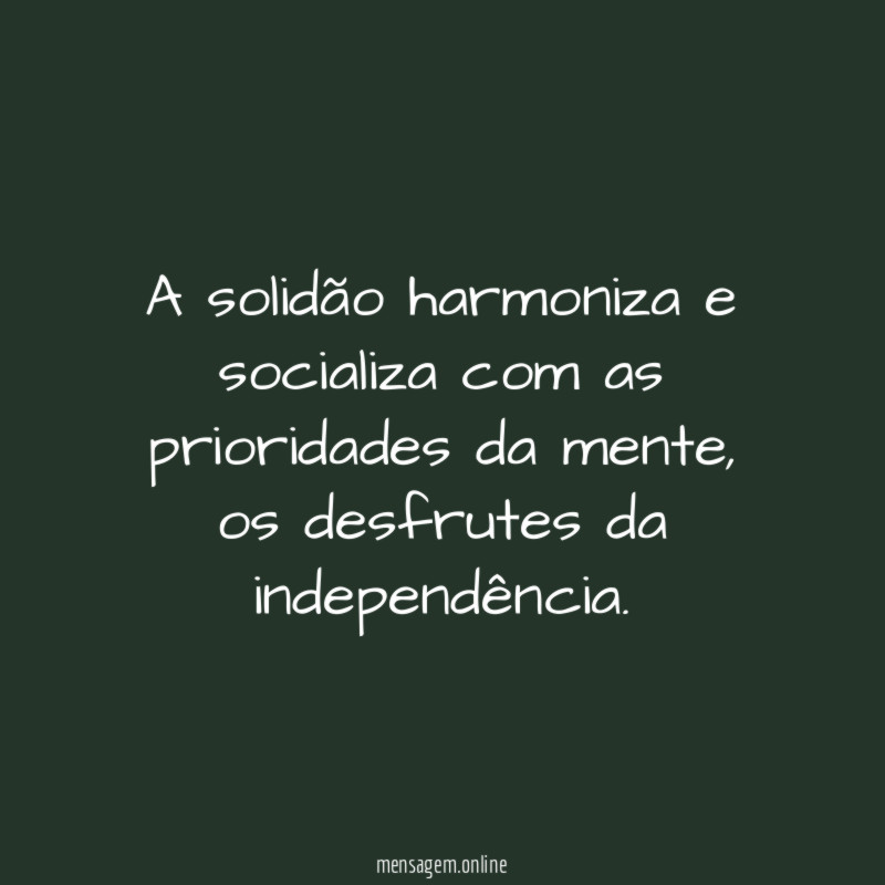 "VIVER SOZINHO é está de bem com a alma. Independente para chorar, amar em profundo egoísmo, livre do passado e sem medo de ser Feliz."