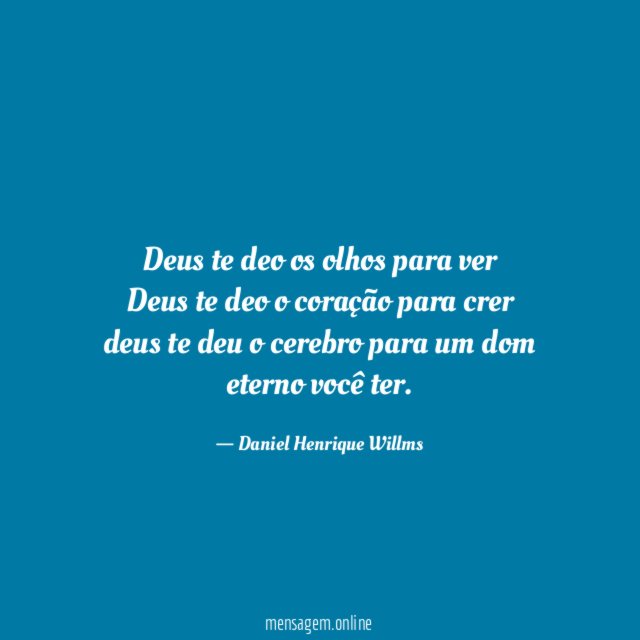 Deus não quer saber se você é feio ou bonito rico ou pobre seu valor vem de dentro o amor dele é eterno. sua vida é uma honra que só ele te concedeo.
