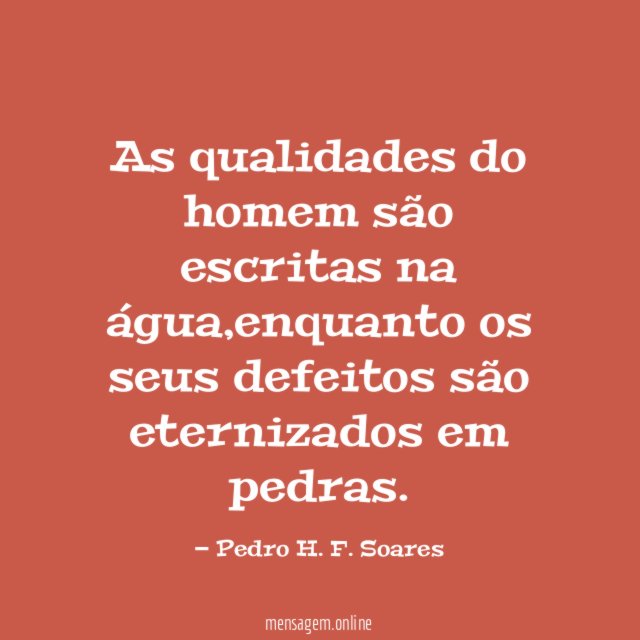 As qualidades do homem são escritas na água, enquanto os seus defeitos