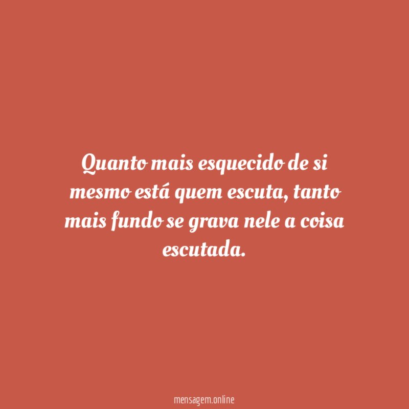 Quanto mais esquecido de si mesmo está quem escuta, tanto mais fundo se grava nele a coisa escutada.